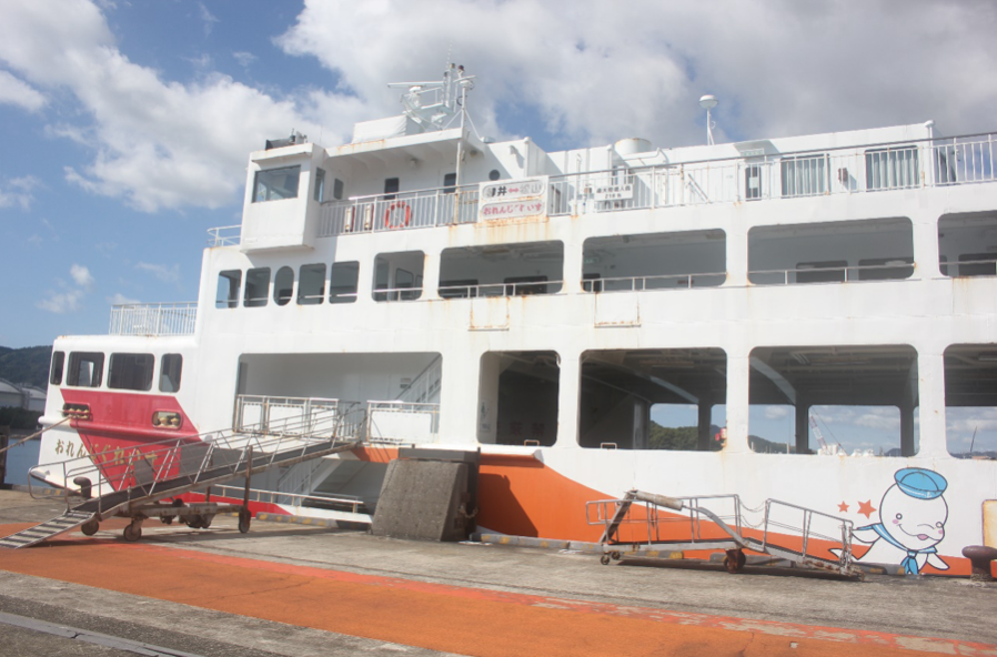フェリーの右下にイメージキャラクターのスナメリ、メリ坊君が写ってます。