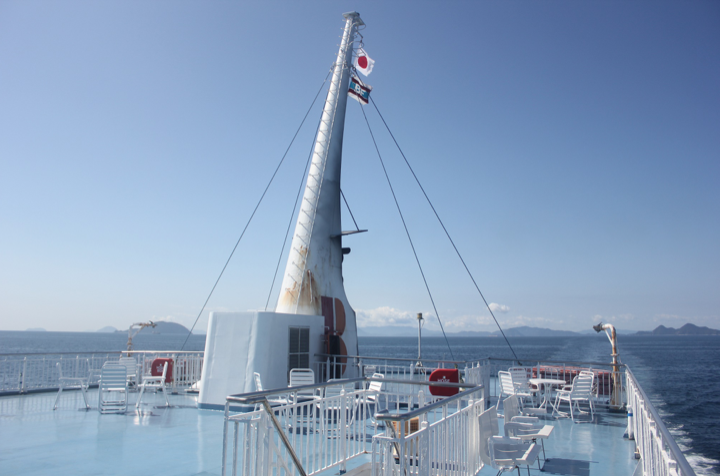 柳井~三津浜まで片道何と2時間30分。途中に周防大島の伊保田港という港があったんですが、帰りのフェリーの便数が少なく、一度下船すると移動も徒歩になり数時間足止め状態になるのでいっそ四国まで渡ってみようと思いました。